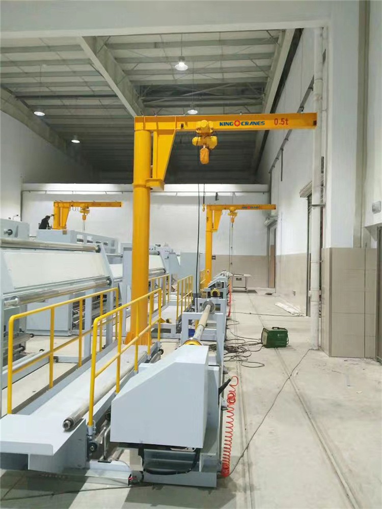 柱式懸臂起重機(jī)由立柱,旋轉(zhuǎn)臂,懸臂驅(qū)動器和電動葫蘆組成。柱底下部通過地腳螺栓固定在混凝土基礎(chǔ)上,電機(jī)驅(qū)動減速器驅(qū)動裝置使懸臂旋轉(zhuǎn)。電動葫蘆用于懸臂工字梁上的往復(fù)操作。柱式懸臂起重機(jī)可以幫助您減少生產(chǎn)準(zhǔn)